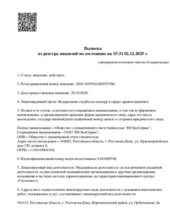 Уровень стоимости лечения зависит от конкретных услуг, применяемых методов, индивидуальных потребностей каждого пациента. Приемлемые цены, гибкие условия оплаты доступны для наших клиентов.